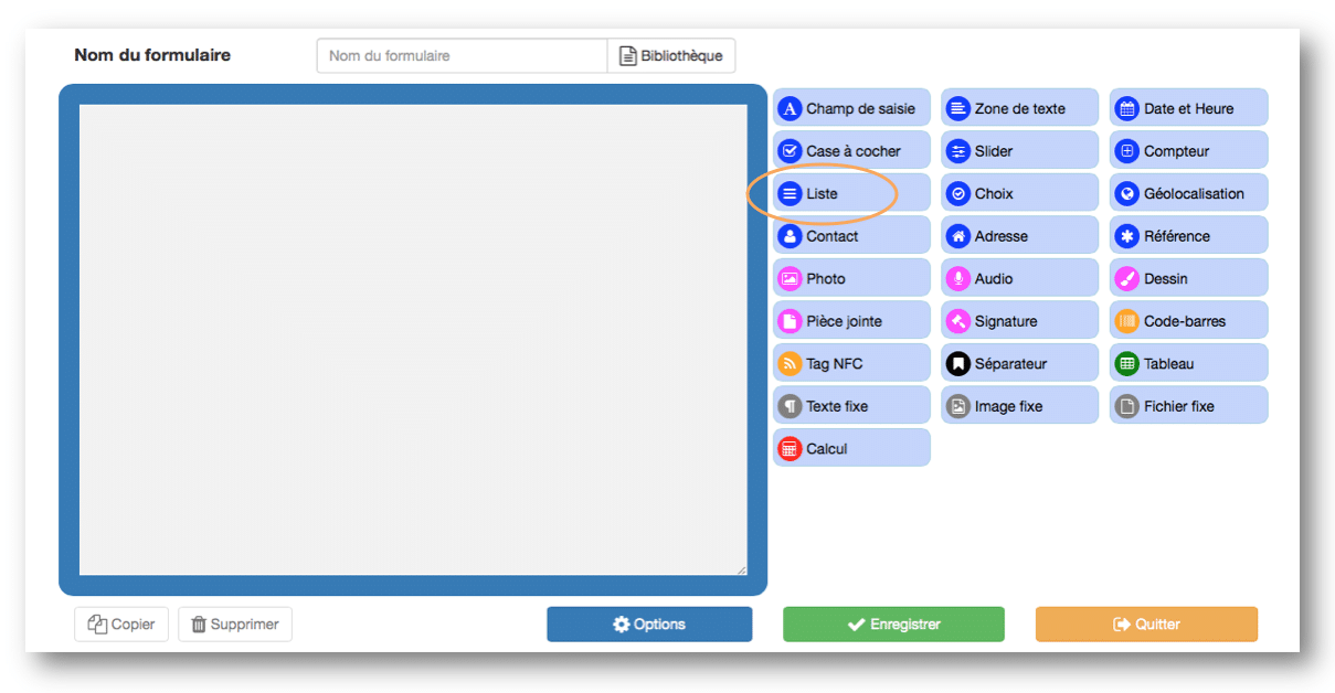 Seul les Chefs de Groupe et les Administrateurs ont la possibilité de créer ou modifier des formulaires.